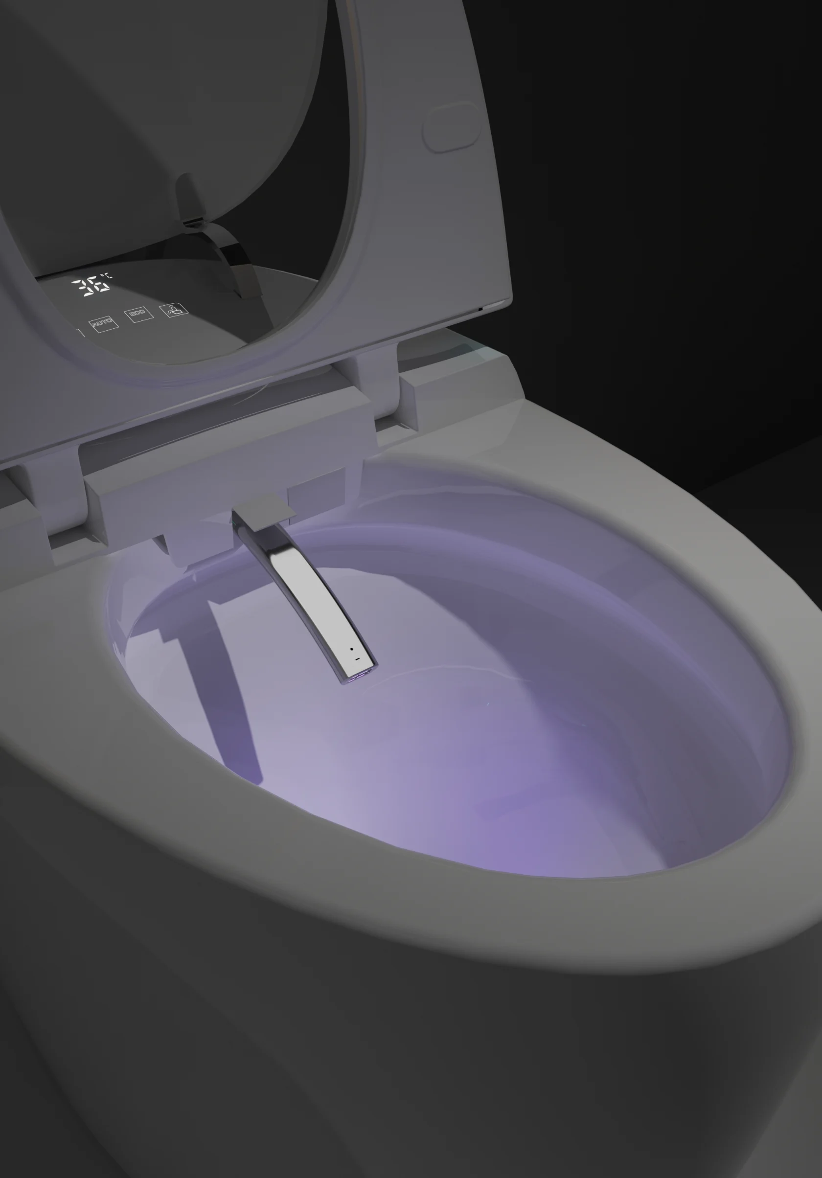 UV svetlo eliminiše čak 99.9% bakterija sa površina u kontaktu s vodom i telom. Sterilizacija se pokreće automatski po završetku korišćenja i ne zahteva nikakvu dodatnu akciju korisnika.